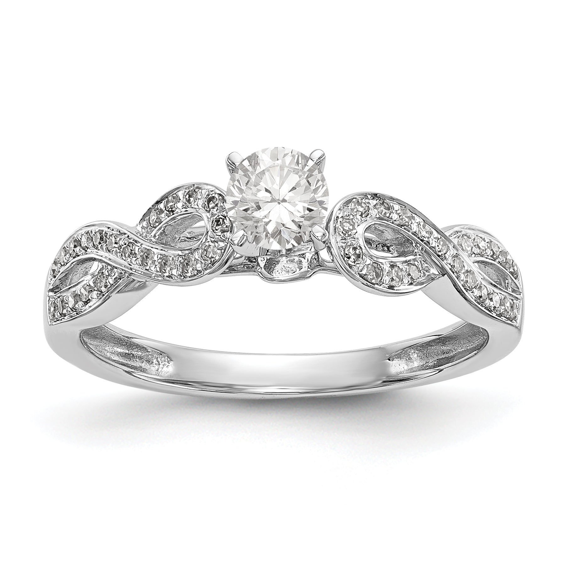 14K White Gold Peg Set Diamond Semi-mount Criss-Cross Engagement Ring