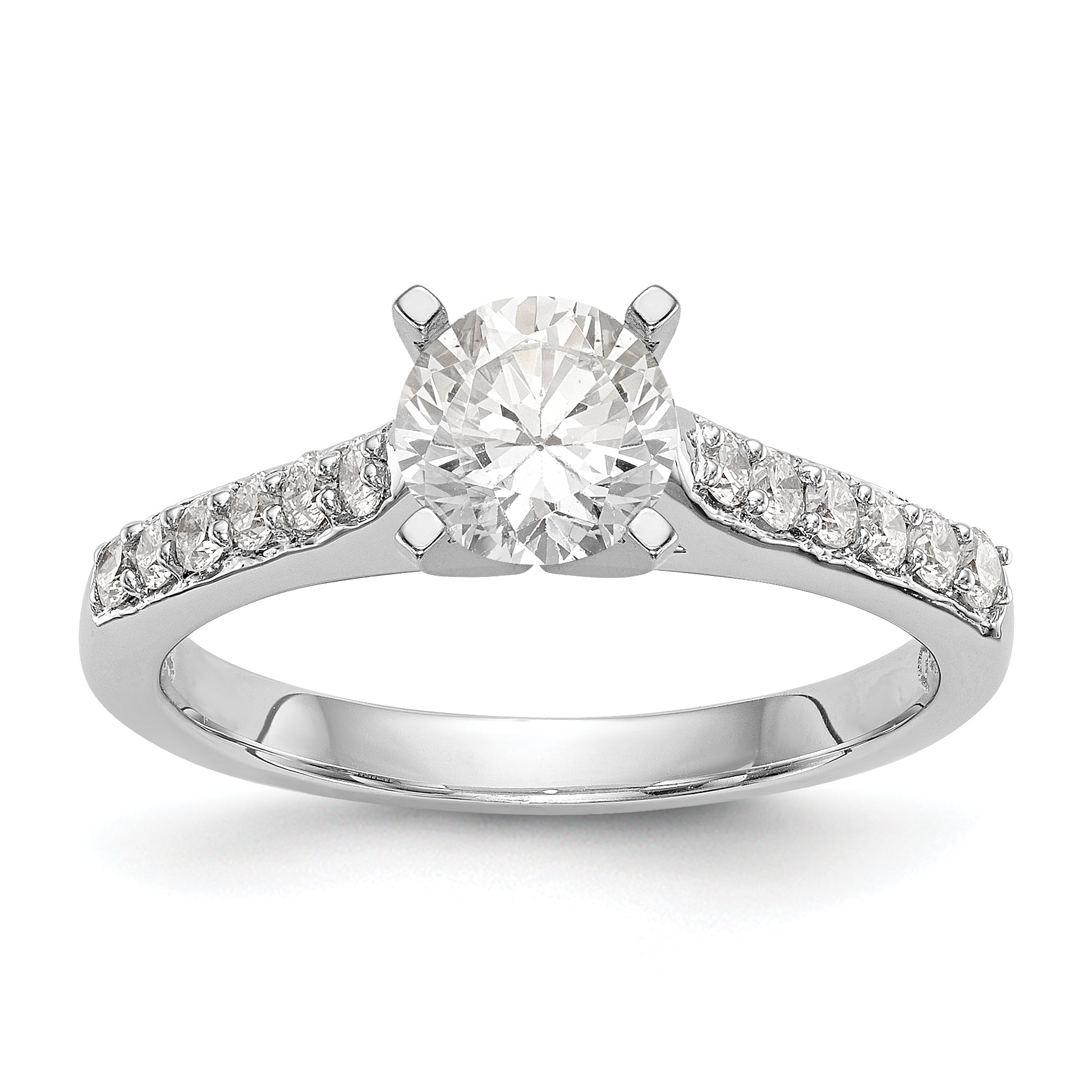 Item Specification: Material: Primary - Purity:14K Finish:Polished Stone Type_1:Center Stone Mounting(s) Stone Type_2:Diamond Stone Type_3:Diamond Stone Quantity_1:1 Stone Quantity_2:4 Stone Quantity_3:8 Plating:Rhodium Band Width:2.8 mm Stone Weight_1:0.75 ct Stone Weight_2:0.0225...