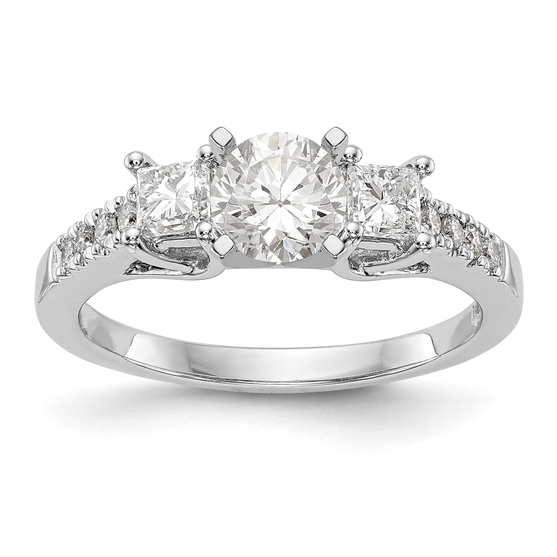 14K White Gold 3-Stone Plus Peg Set Center Princess Diamond Semi-mount Engagement Ring - 7