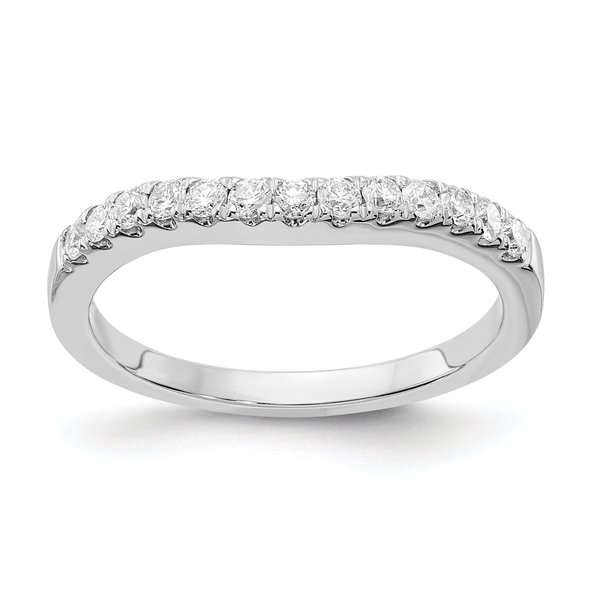 Item Specification: Material: Primary - Purity:14K Finish:Polished Stone Type_1:Diamond Stone Type_2:Diamond Stone Type_3:Diamond Stone Quantity_1:10 Stone Quantity_2:12 Stone Quantity_3:4 Plating:Rhodium Band Width:2.70 to 1.85 mm (tapered) Stone Weight_1:0.03 ct Stone...