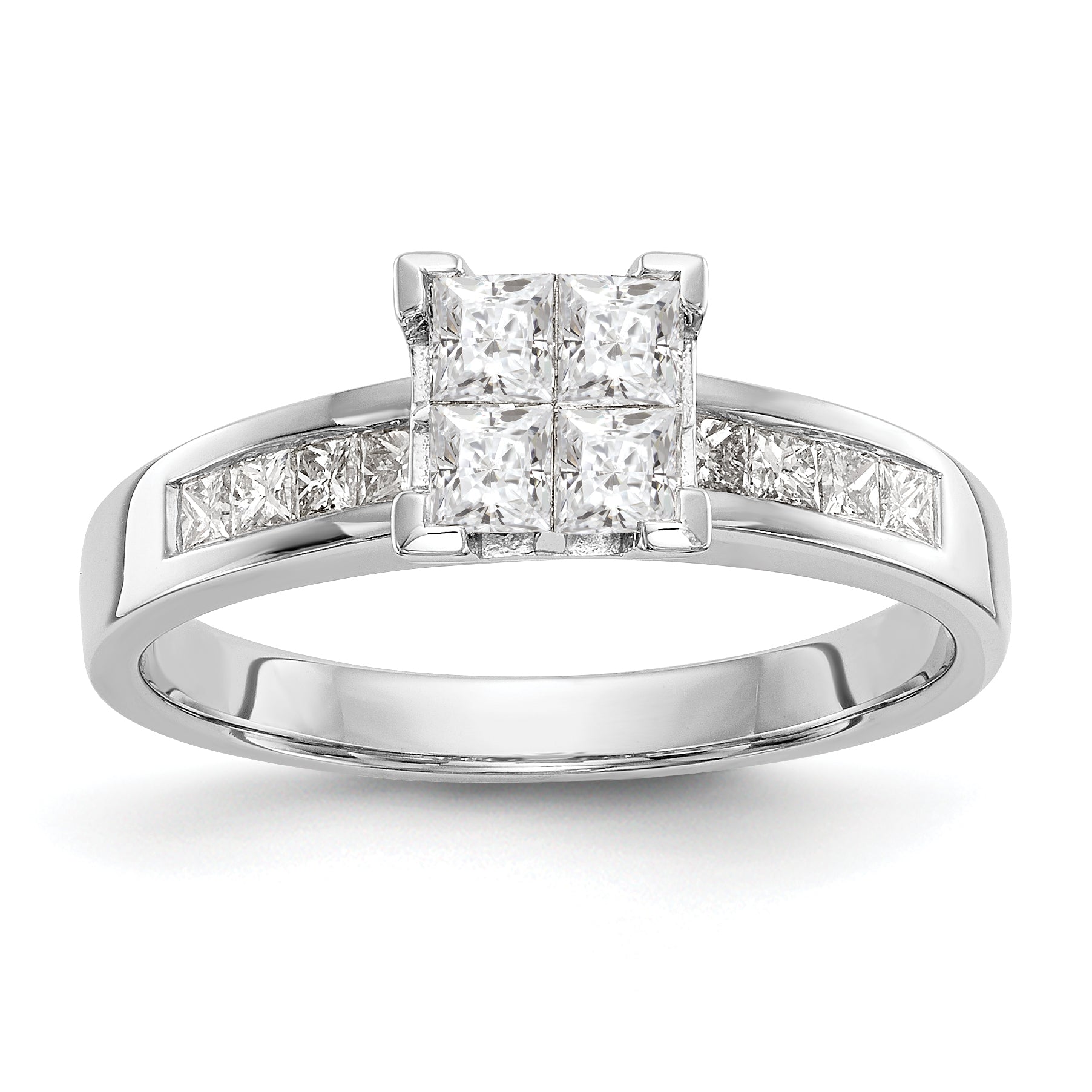 14K White Gold Square Cluster 3/4 carat Princess Diamond Complete Engagement Ring