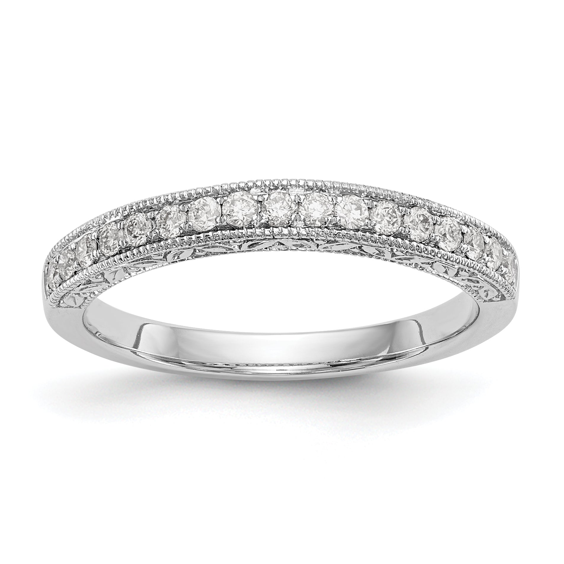 Item Specification: Material: Primary - Purity:14K Finish:Polished Stone Type_1:Diamond Stone Quantity_1:17 Plating:Rhodium Band Width:1.8 to 2.80 mm (tapered) Stone Weight_1:0.012 ct Size (Minimum):6 Size (Maximum):8 Sizing Adjustment Increment:0.25 Feature:Solid Manufacturing...