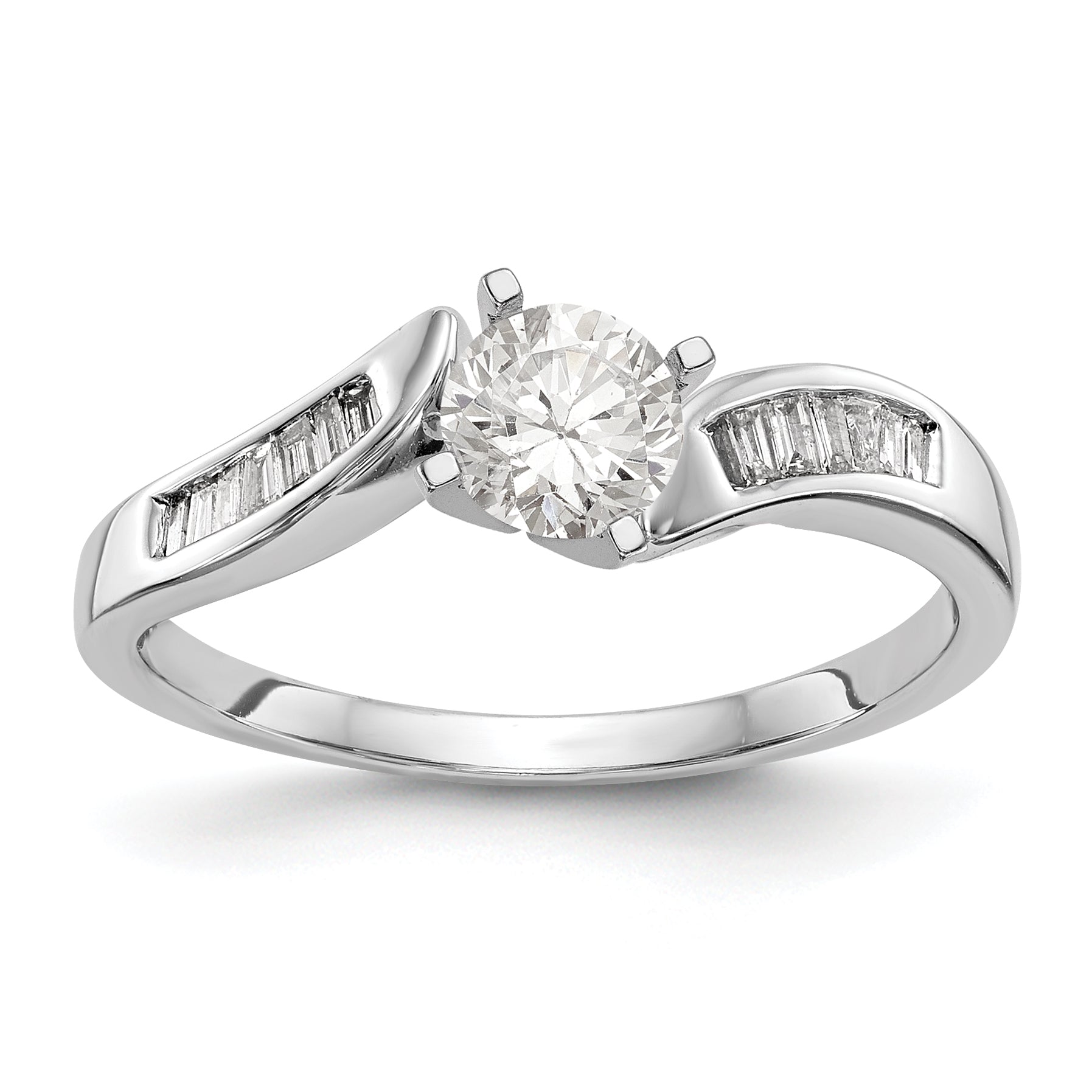 Item Specification: Material: Primary - Purity:14K Finish:Polished Stone Type_1:Center Stone Mounting(s) Stone Type_2:Diamond Stone Quantity_1:1 Stone Quantity_2:14 Plating:Rhodium Band Width:1.4 to 2.4 mm (tapered) Stone Weight_1:1 ct Stone Weight_2:0.01 ct...