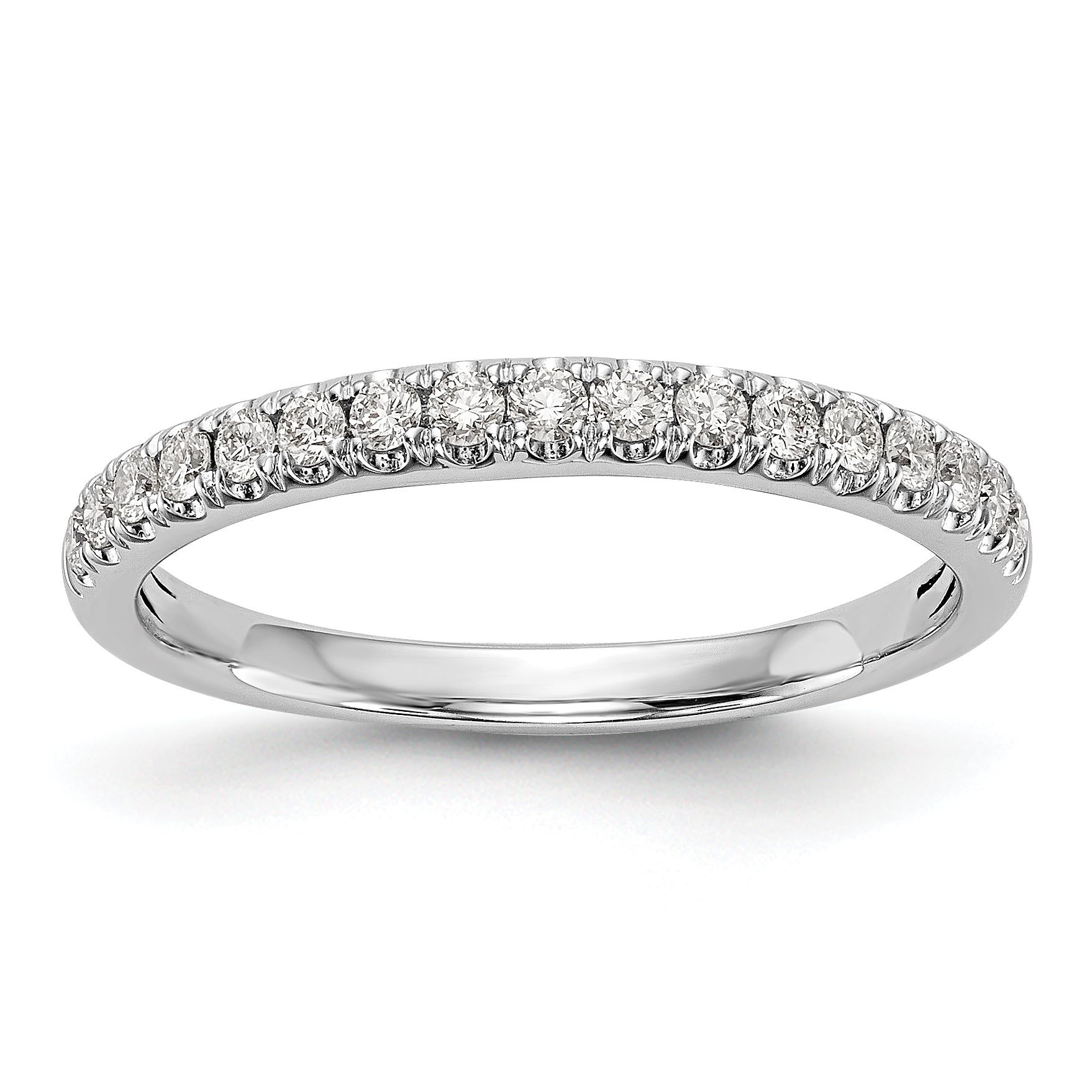 Item Specification: Material: Primary - Purity:14K Finish:Polished Stone Type_1:Diamond Stone Quantity_1:17 Plating:Rhodium Band Width:2.4 to 2 mm (tapered) Stone Weight_1:0.025 ct Stone Clarity_1:I1 (AA) Size (Minimum):5 Size (Maximum):9 Sizing Adjustment...