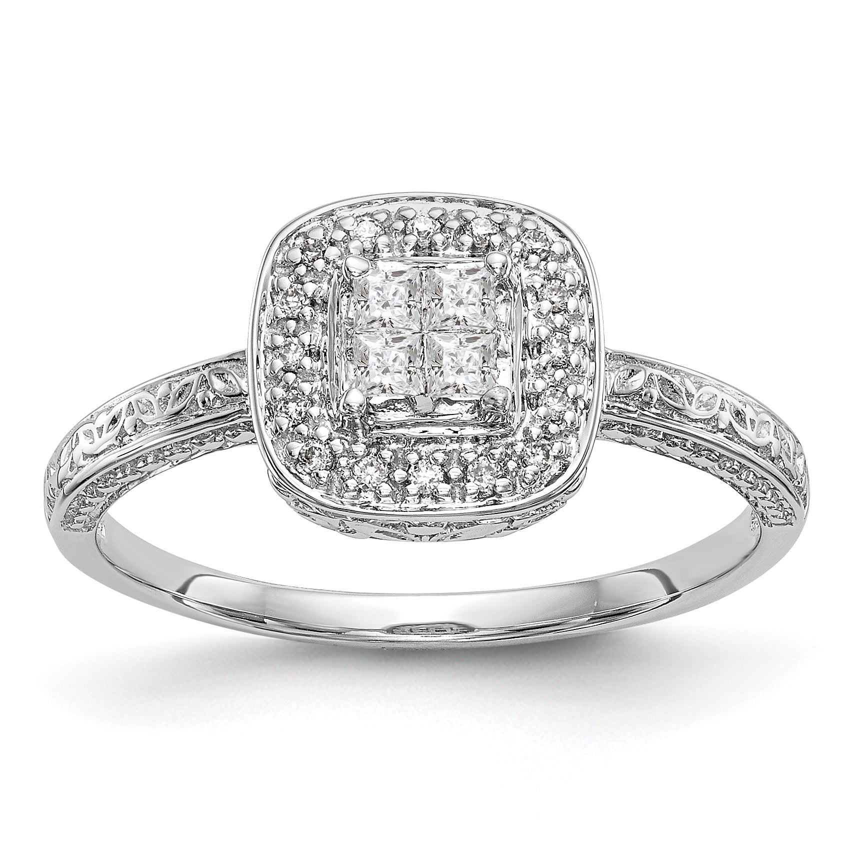 14K White Gold Square Halo Cluster 1/5 carat Princess/Round Diamond Complete Engagement Ring