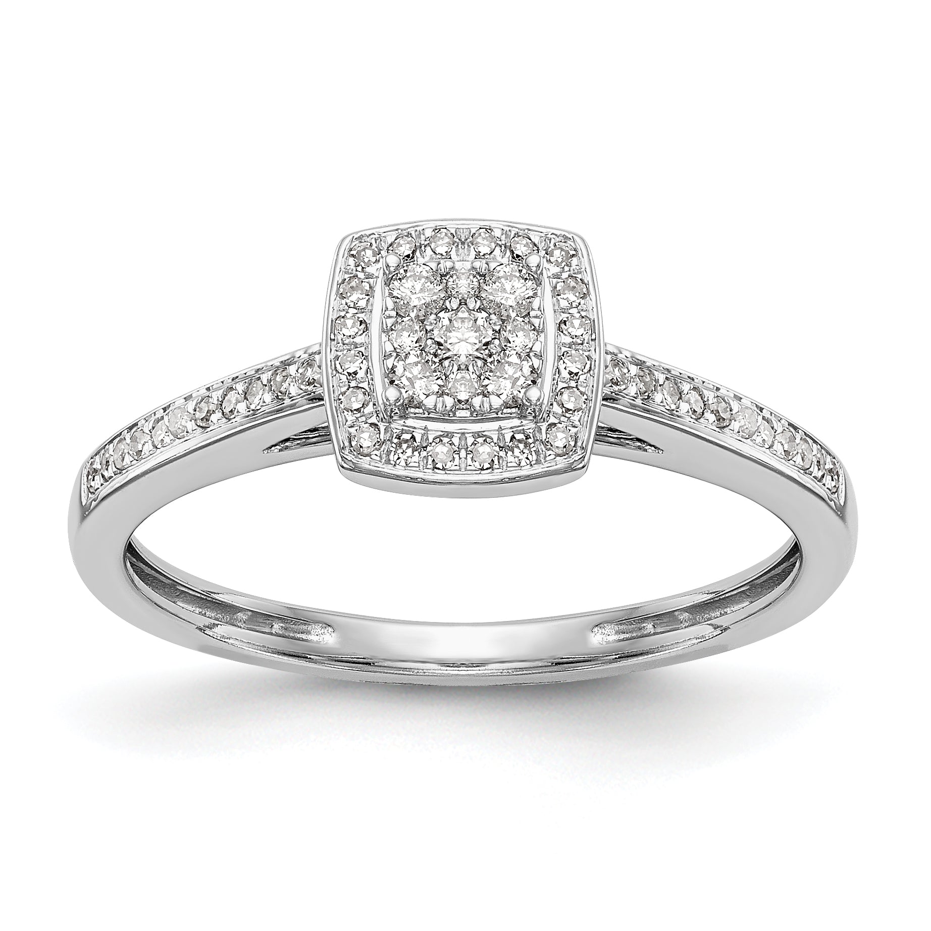 14K White Gold Square Halo Cluster 1/5 carat Diamond Complete Engagement Ring
