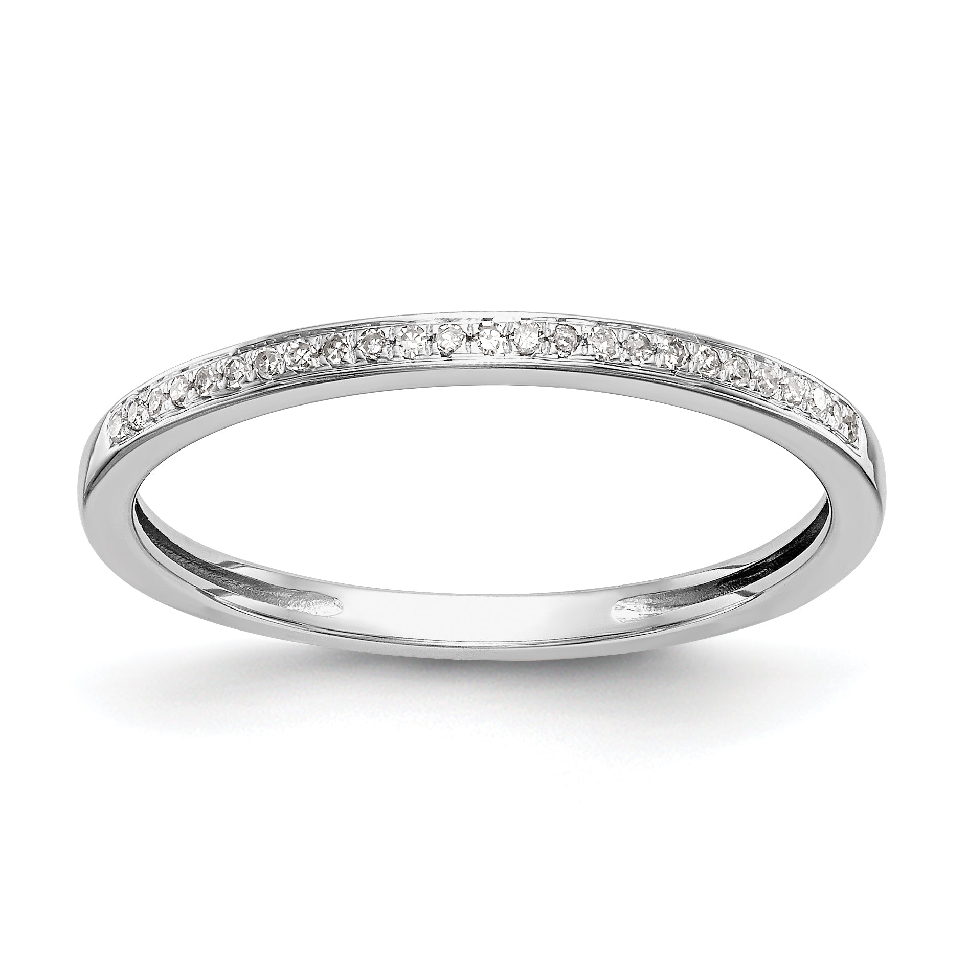 Item Specification: Material: Primary - Purity:14K Finish:Polished Stone Type_1:Diamond Stone Type_2:Diamond Stone Quantity_1:36 Stone Quantity_2:18 Plating:Rhodium Band Width:1.7 to 1.8 mm (tapered) Stone Weight_1:0.003 ct Stone Weight_2:0.0025 ct Size (Minimum):6...