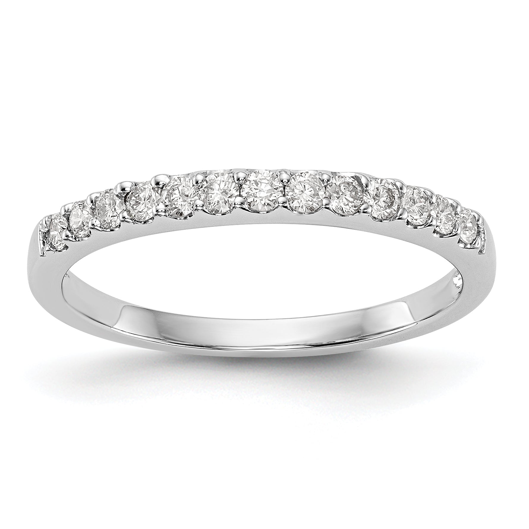 Item Specification: Material: Primary - Purity:14K Finish:Polished Stone Type_1:Diamond Stone Type_2:Diamond Stone Quantity_1:11 Stone Quantity_2:2 Plating:Rhodium Band Width:2.3 to 1.7 mm (tapered) Stone Weight_1:0.02 ct Stone Weight_2:0.015 ct Size (Minimum):6...